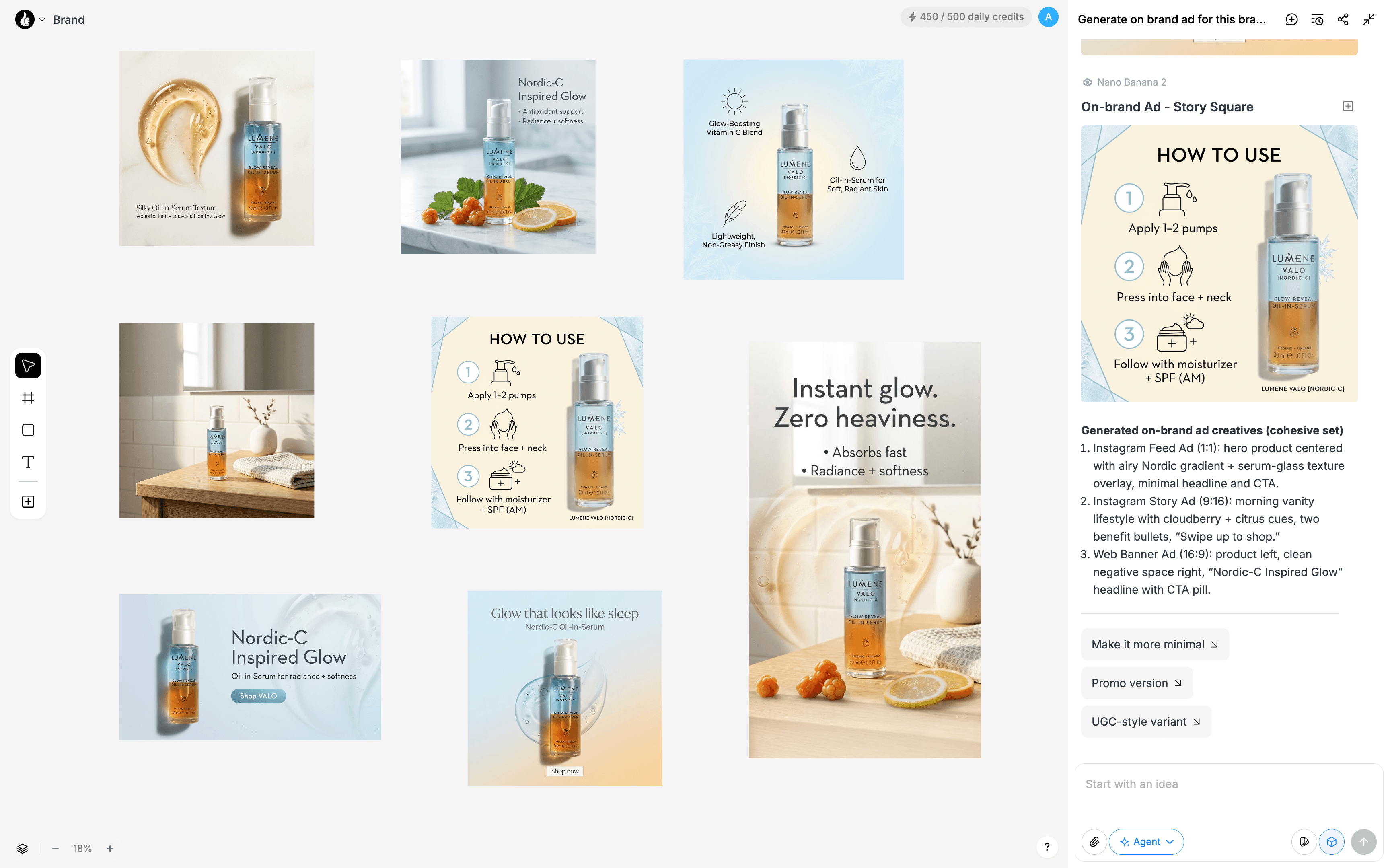 Create high-quality marketing assets from simple prompts, tailored to your brand and built to scale across posters, ads, product images, flyers, and more.